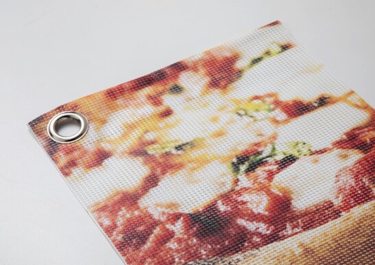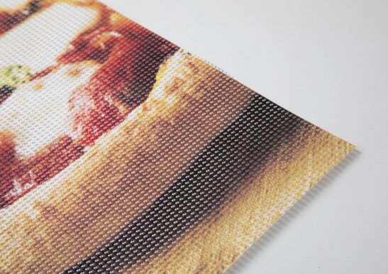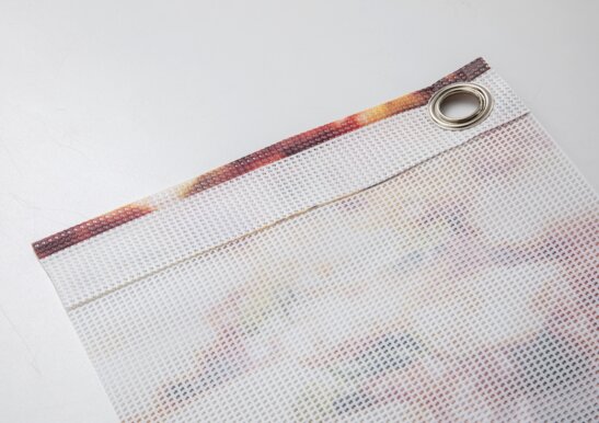 Massima resistenza all'aria aperta. E la tua immagine dura di più! Il banner stampato su PVC microforato è perfetto per la realizzazione di striscioni o tensostrutture di grande formato da esterno, perché la presenza dei fori lo espone con minore resistenza alle raffiche di vento, evitando il comune effetto vela. Il banner in PVC microforato, viene anche impiegato per la stampa di tendaggi e separazione di ambienti o stand fieristici, perché grazie alla grammatura molto leggera e alla presenza dei microfori è semitrasparente. Una volta terminata la stampa, i Banner in PVC microforato, possono avere varie finiture che li completano per renderli prodotti di estrema qualità: il rinforzo perimetrale per rendere il supporto più resistente alla tensione, l’occhiellatura, ovvero l’applicazione di anelli in acciaio per posizionare il banner con elastici adatti o corde.